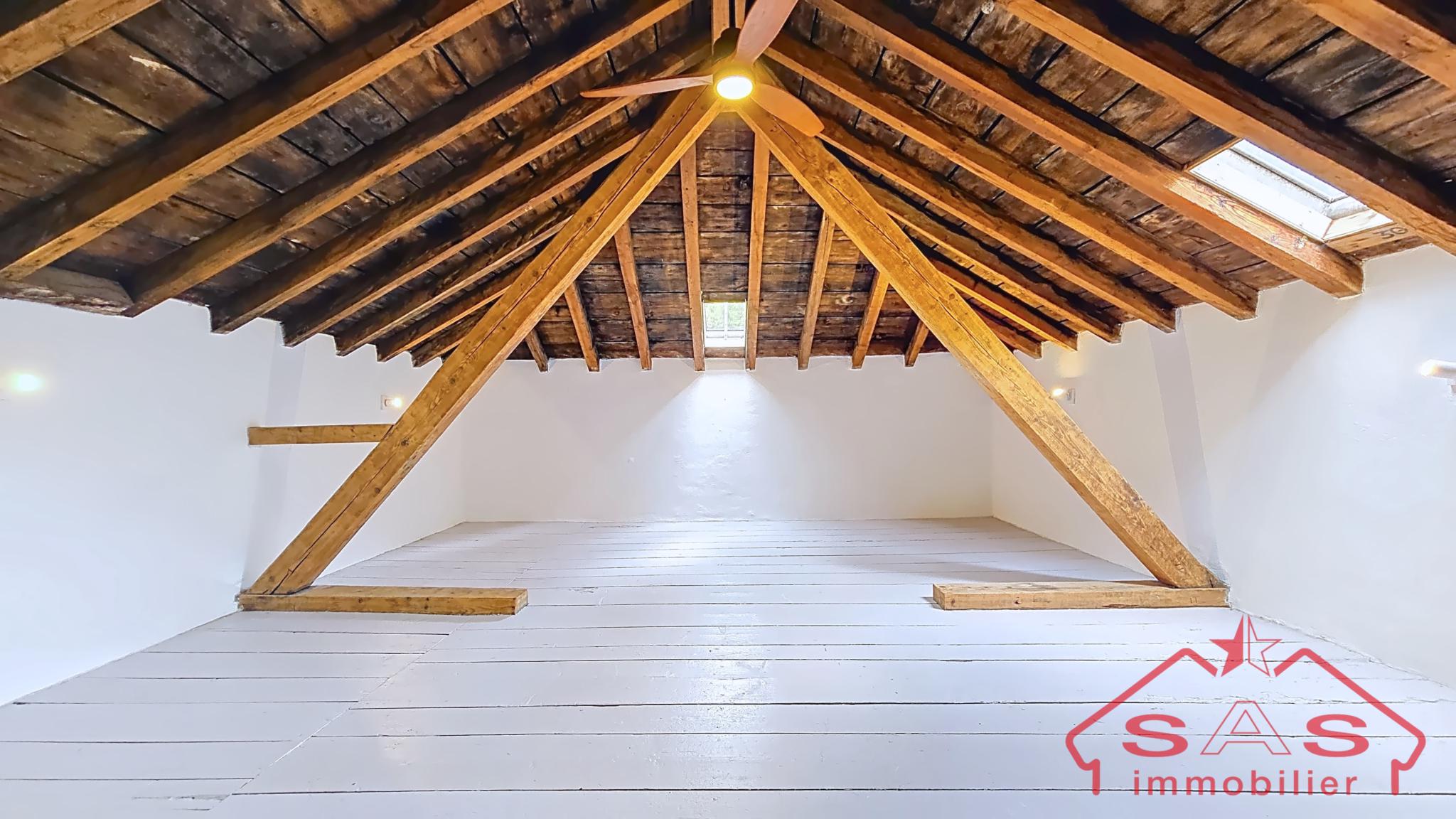 - Au 3ᵉ et dernier étage, un espace composé d'une mansarde en bois et d’une pièce attenante de 35 m², peuvent être réunies et aménagées selon vos besoins : pièces supplémentaires, espace de travail, appartement indépendant sous la charpente apparente.